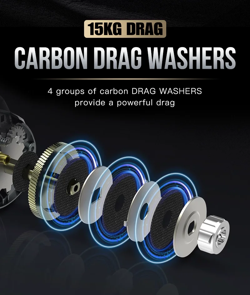 • Arraste 15kg:Com um arrasto de 15kg, este carretel pode lidar com até mesmo os peixes mais resistentes sem quebrar ou escorregar.