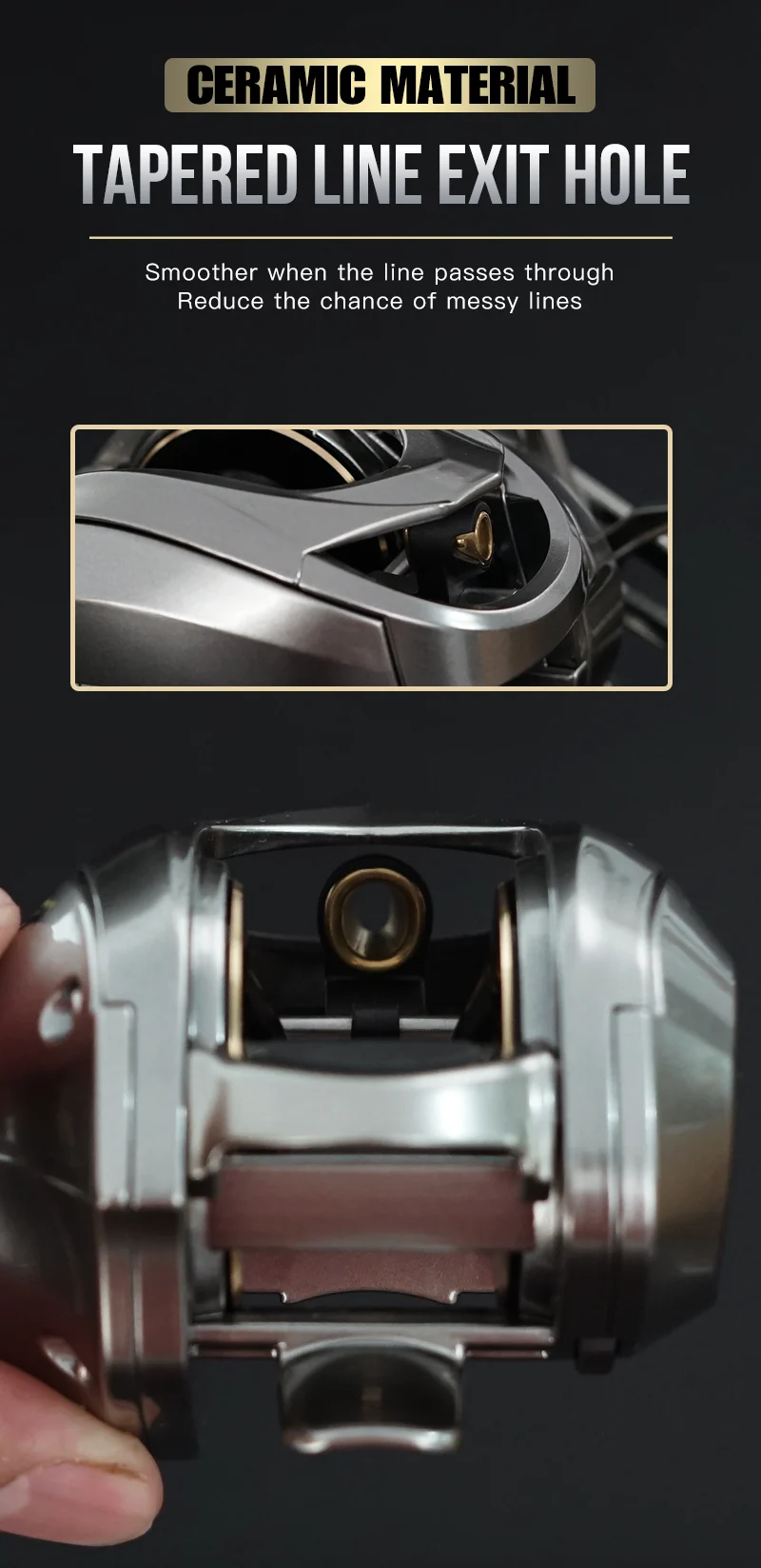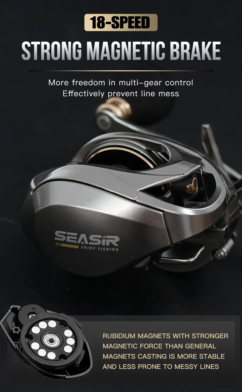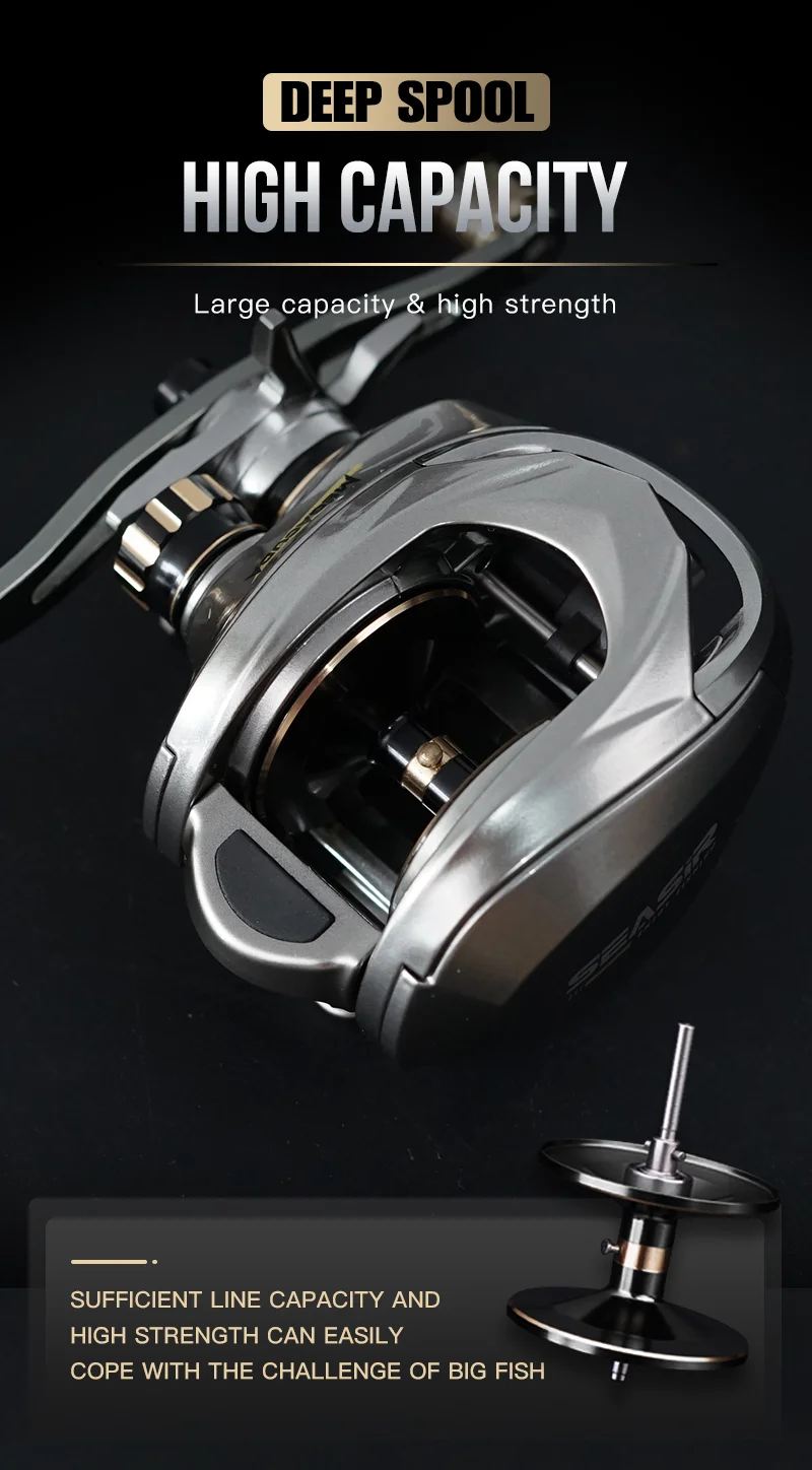 • Carretel profundo:O carretel profundo deste carretel pode conter mais linha, tornando-o perfeito para a captura de peixes que nadam fundo na água.