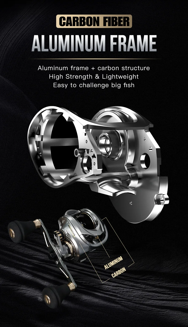 • Lado do carbono:O lado de carbono deste carretel é leve e durável, tornando-o fácil de manusear e resistente ao desgaste.